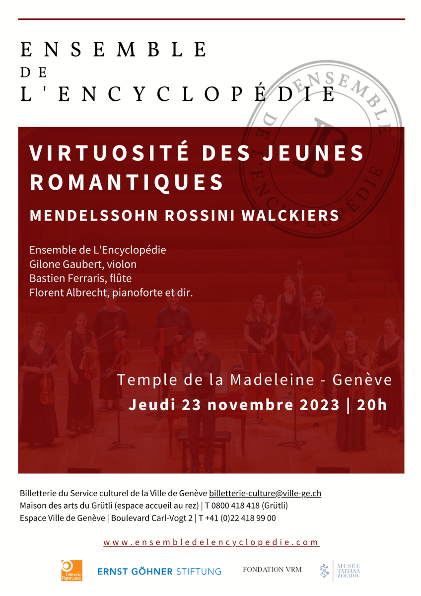 Since 2022, L'Encyclopédie has been in residence at the Zoubov Museum Foundation, under the governance of the State of Geneva. This partnership has been renewed through 2027, and we are delighted: a chamber music season will soon be launched within its walls — one of the most beautiful settings in Geneva! |